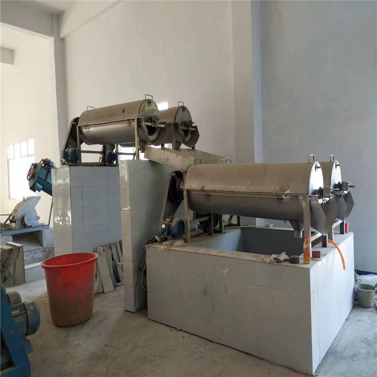 現小編以我們汝陽古城機械廠的設備配置來講解下機械大致配套,比如有簡易型設備和流水線自動化設備,我們首先說下簡易型的紅薯淀粉機械,設備主要完成前半部分,包括清洗、破碎、分離、除沙、凈化等,后續的沉淀、脫水、烘干等環節都是由人力通過沉淀,二次過濾,吊坨,晾曬完成,需要人工操作。整套設備下來投資少,見效快,但是用人較多,勞動強度大,這種簡易型設備投資方面并不高,對于初學者來說也是嘗試性投資。而一套實用的淀粉設備與簡易型生產線最明顯的區別在于配置有脫水、烘干設備,省去了人工起粉晾曬等工序,解放人力,自動化程度得到明顯提高,當然價格也比簡易型的淀粉生產線要高。